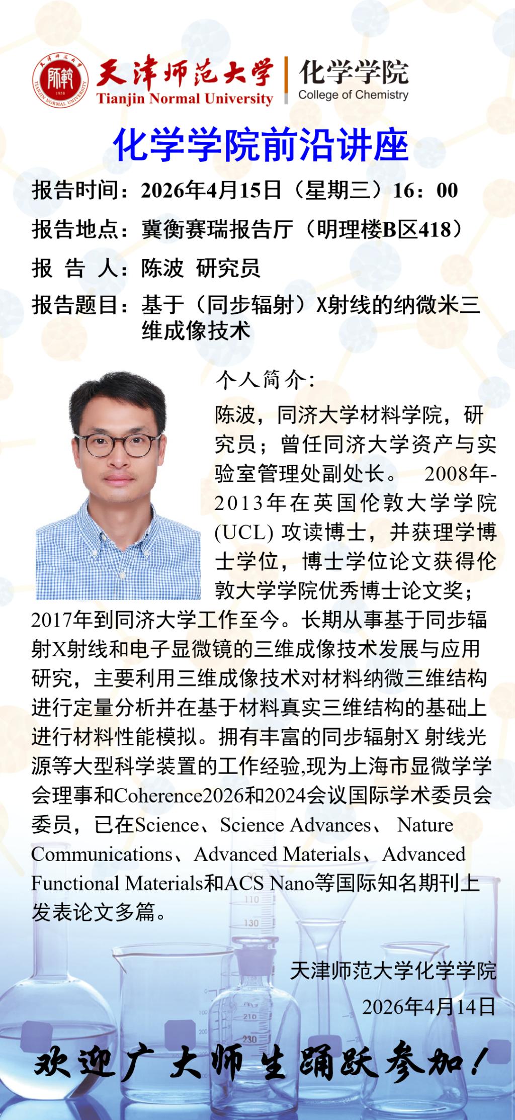 化学学院前沿讲座:基于(同步辐射)X射线的纳微米三维成像技术