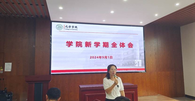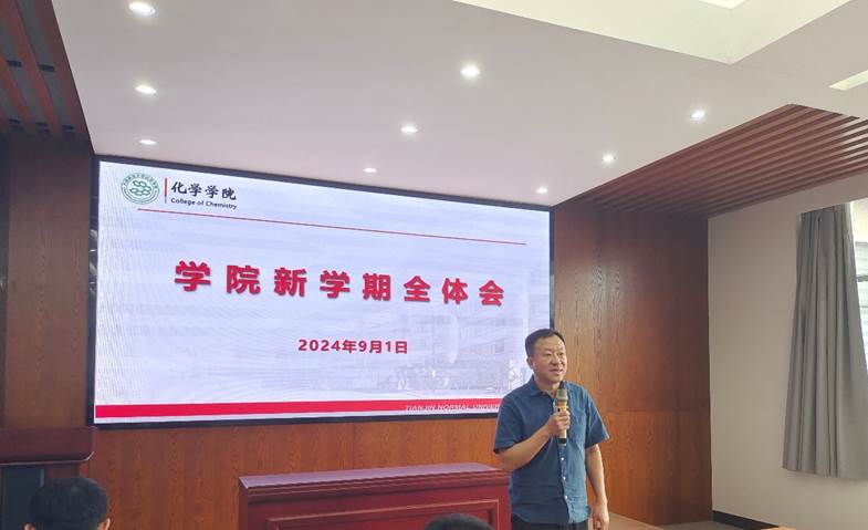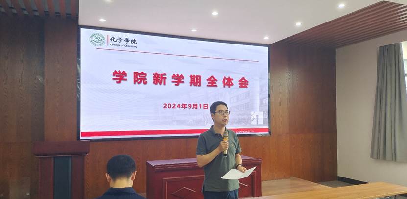 为深入学习贯彻党的二十届三中全会精神,全方位谋划学院发展,为新学期各项工作开好头、起好步,9月1日上午,化学学院在冀衡赛瑞报告厅召开新学期全体教职工大会暨师德首课,会议由学院党委书记吴金明主持。