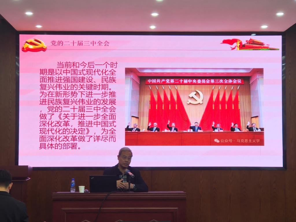 2024年11月29日,化学学院邀请翟昌民教授为全体教职工讲授党的二十届三中全会精神专题党课。