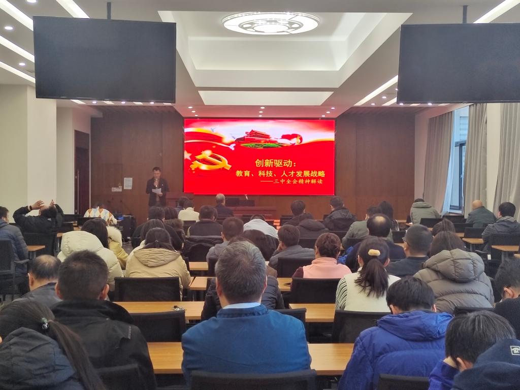 翟昌民教授以《创新驱动:教育、科技、人才发展战略》为题,深刻剖析了当前和今后一个时期是以中国式现代化全面推进强国建设、民族复兴伟业的关键时期。为在新形势下进一步推进民族复兴伟业的发展,党的二十届三中全会做了《关于进一步全面深化改革,推进中国式现代化的决定》,为全面深化改革做了详尽而具体的部署。翟教授并从回望过往取得的成就及其原因、创新驱动成为新时代发展的必然要求和实现创新的途径:教育、科技、人才三个方面,阐释了教育、科技、人才是中国式现代化的基础性、战略性支撑。必须深入实施科教兴国战略、人才强国战略、创新驱动发展战略,统筹推进教育科技人才体制机制一体改革,健全新型举国体制,提升国家创新体系整体效能。最后,他鼓励学院全体教职工要树立雄心壮志,鼓足干劲、发愤图强、团结奋斗,助力学科、学院和学校发展的同时,要朝着建成科技强国的宏伟目标不断奋勇前进!