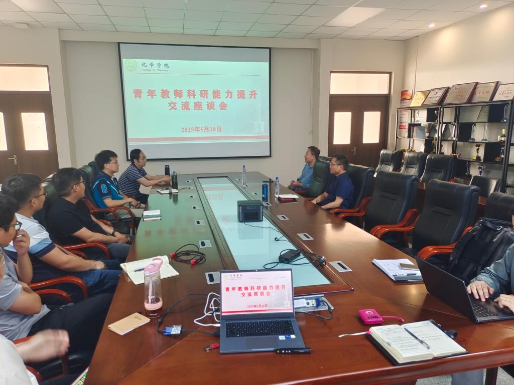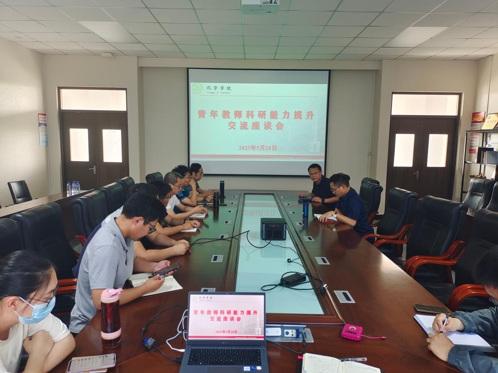 为深入贯彻中央八项规定精神,推进国家自然基金的申报,2025年5月28日下午,化学学院举办“青年教师科研能力提升交流座谈会”。执行院长邹吉军以及部分青年教师参加本次座谈会。本次座谈会由党委书记吴金明主持。