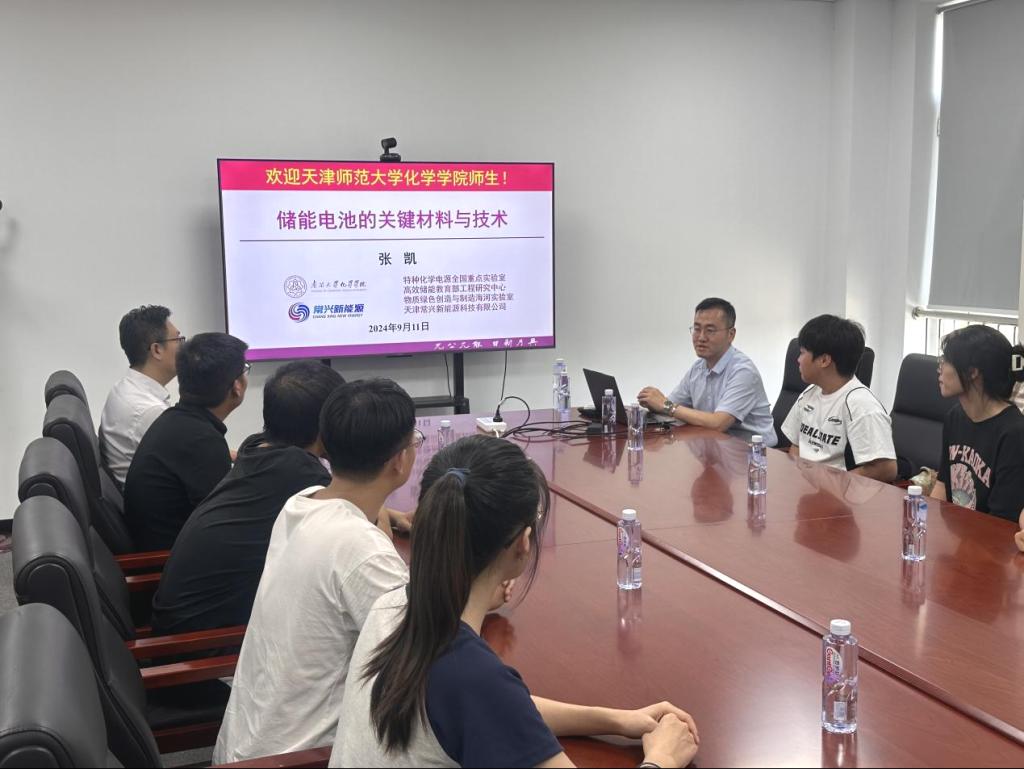 为进一步搭建校企交流平台,促进产学研深度融合,积极开拓毕业生就业渠道,9月11日,化学学院副院长李程鹏、副教授孙洪明带领2024级研究生新生走访了位于天开高教科创园的天津常兴新能源科技有限公司。常兴新能源科技有限公司依托南开大学陈军院士新能源电池团队的核心专利技术,聚焦于钠离子电池、固态锂电池、可充水系锌电池等先进电池体系的关键材料及电芯研发、设计、中试放大与产业转化。